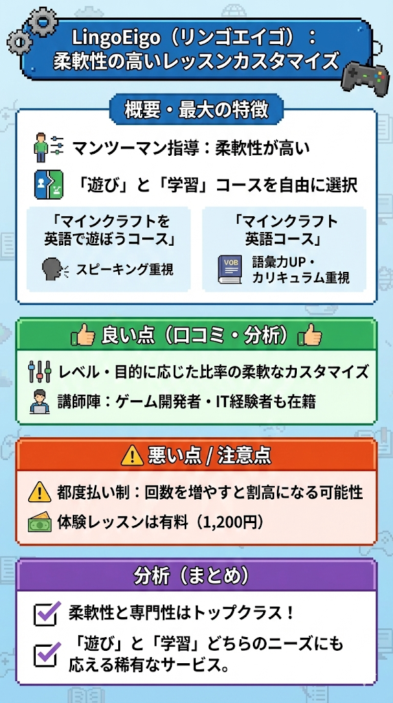4. LingoEigo (リンゴエイゴ):柔軟性の高いレッスンカスタマイズ