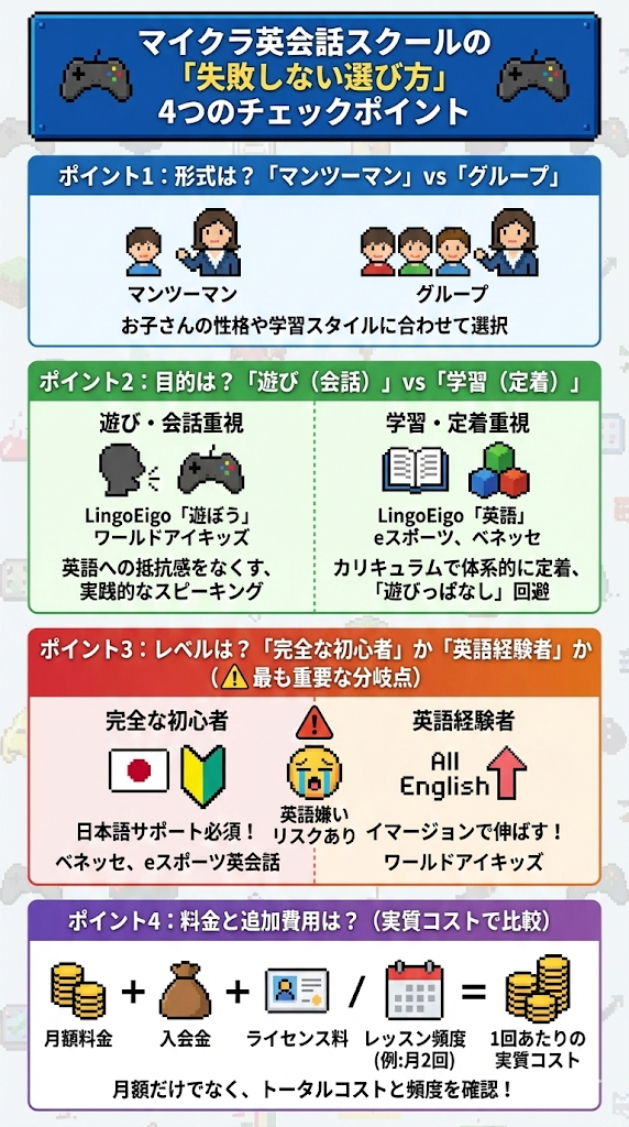 ここまで分析した情報を基に、専門家として「お子さんに最適なスクール」を選ぶための判断基準を4つのステップで提示します。