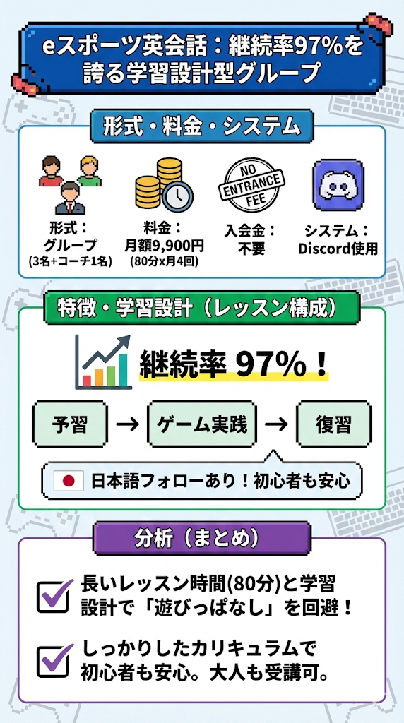 2. eスポーツ英会話:継続率97%を誇る学習設計型グループ