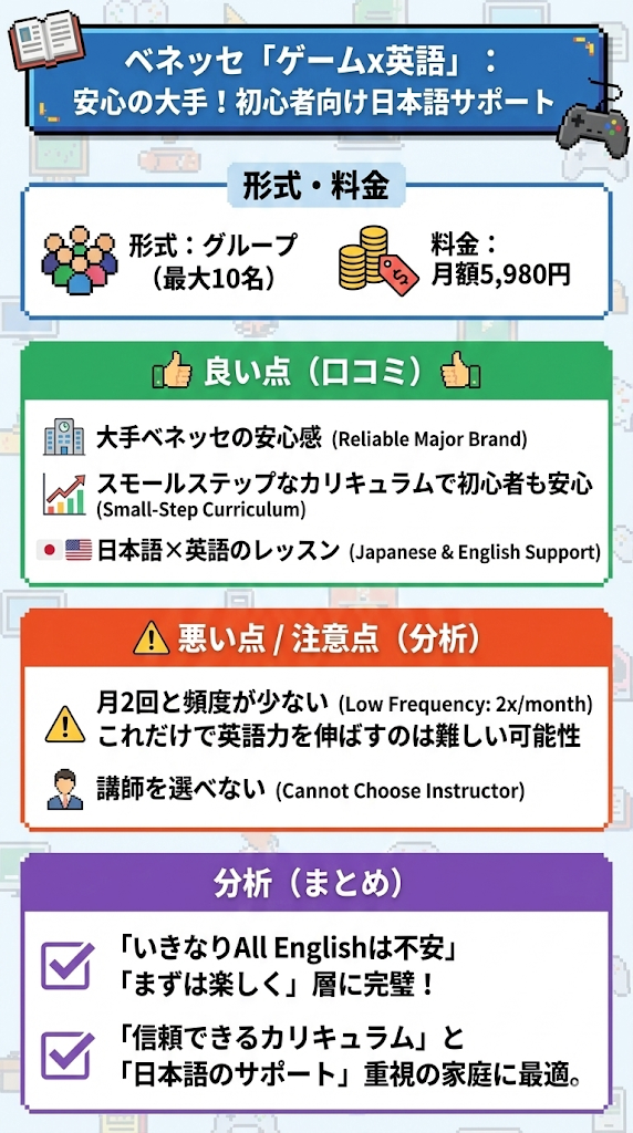 3. ベネッセ「ゲーム×英語」:日本語サポートと初心者カリキュラム